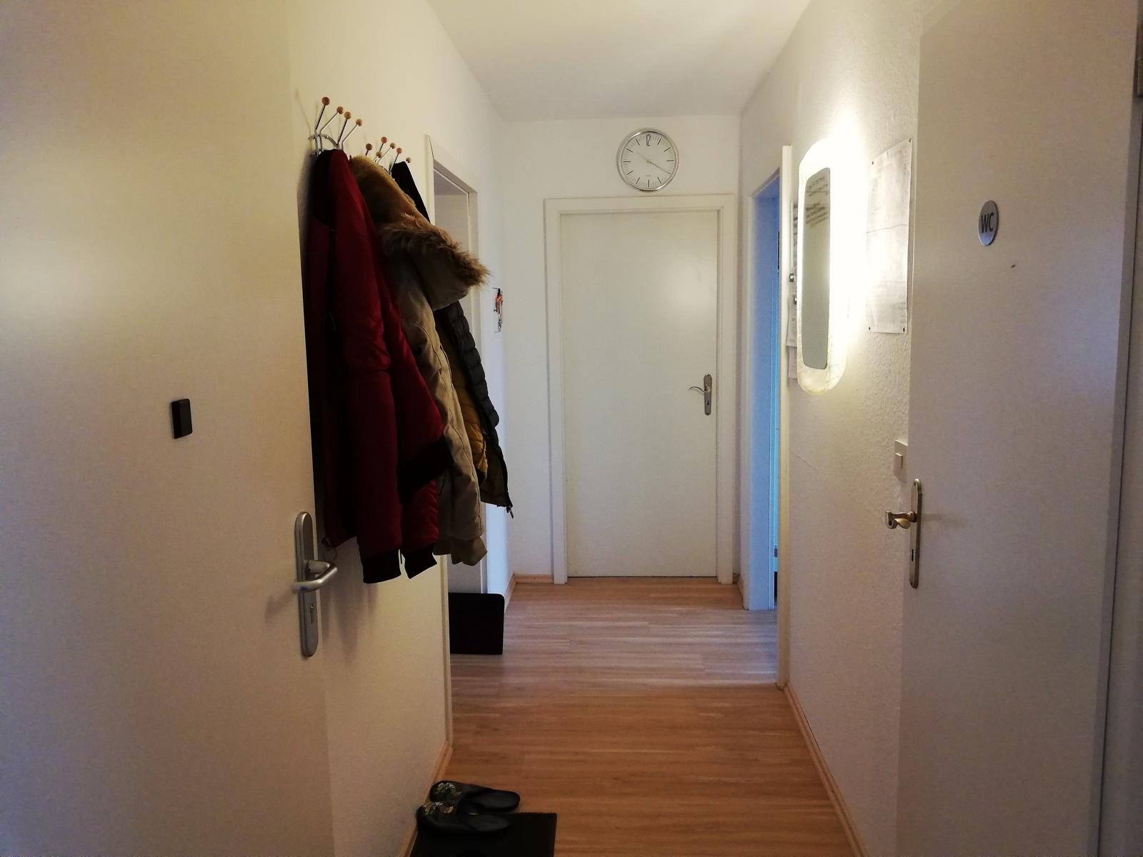 Die Wohnung ist im 1. OG und wurde vollständig renoviert und modernisiert, sodass sie nun sehr komfortabel und ansprechend ausgestattet ist. Die neue und voll ausgestattete Küche mit modernen Geräten und einem Vinylboden lädt zum Kochen ein. Neben der Küche liegt auch im Flur und Wohnzimmer ein schöner Vinylparkettboden. Das geschmackvolle Bad is gefliest während im Schlafzimmer und im Gästezimmer Teppich verlegt wurde.