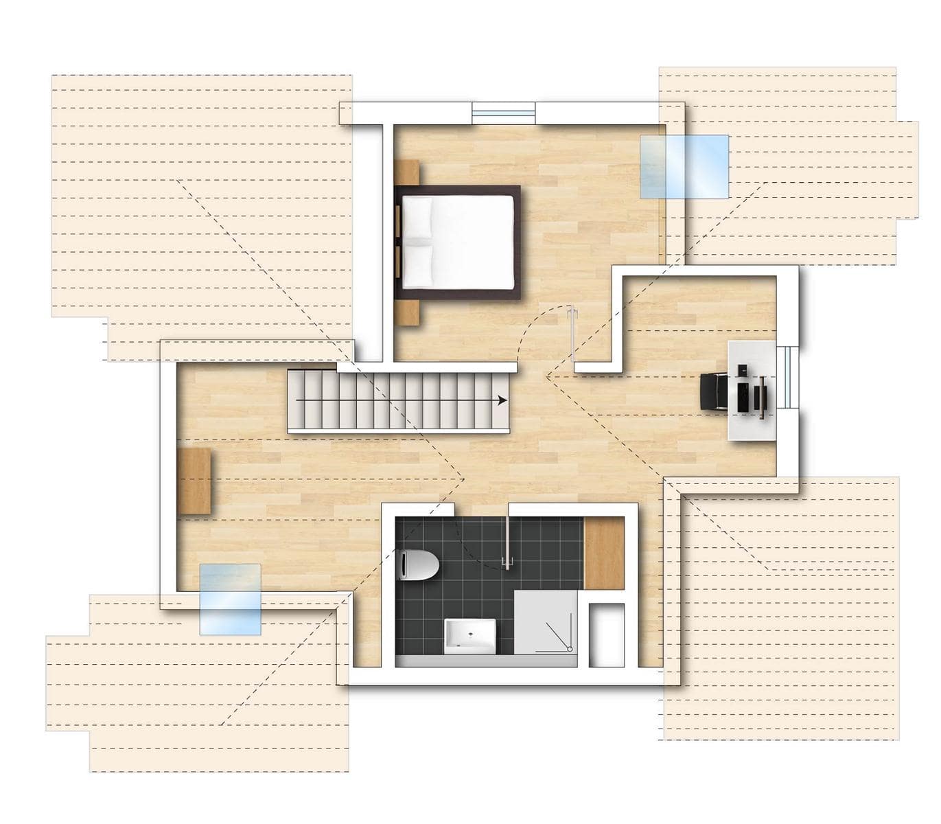 Die ca. 144 m² große Dachgeschoss Maisonette Wohnung bietet eine optimale und großzügige Raumaufteilung über zwei Stockwerke. In der ersten Etage der Wohnung sind 3,5 Zimmer geplant.